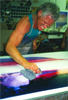 Hal contemplates a blank canvas – psyching up to begin his exotic Bahamas Series, Photo by B.J. Stowers © 1990